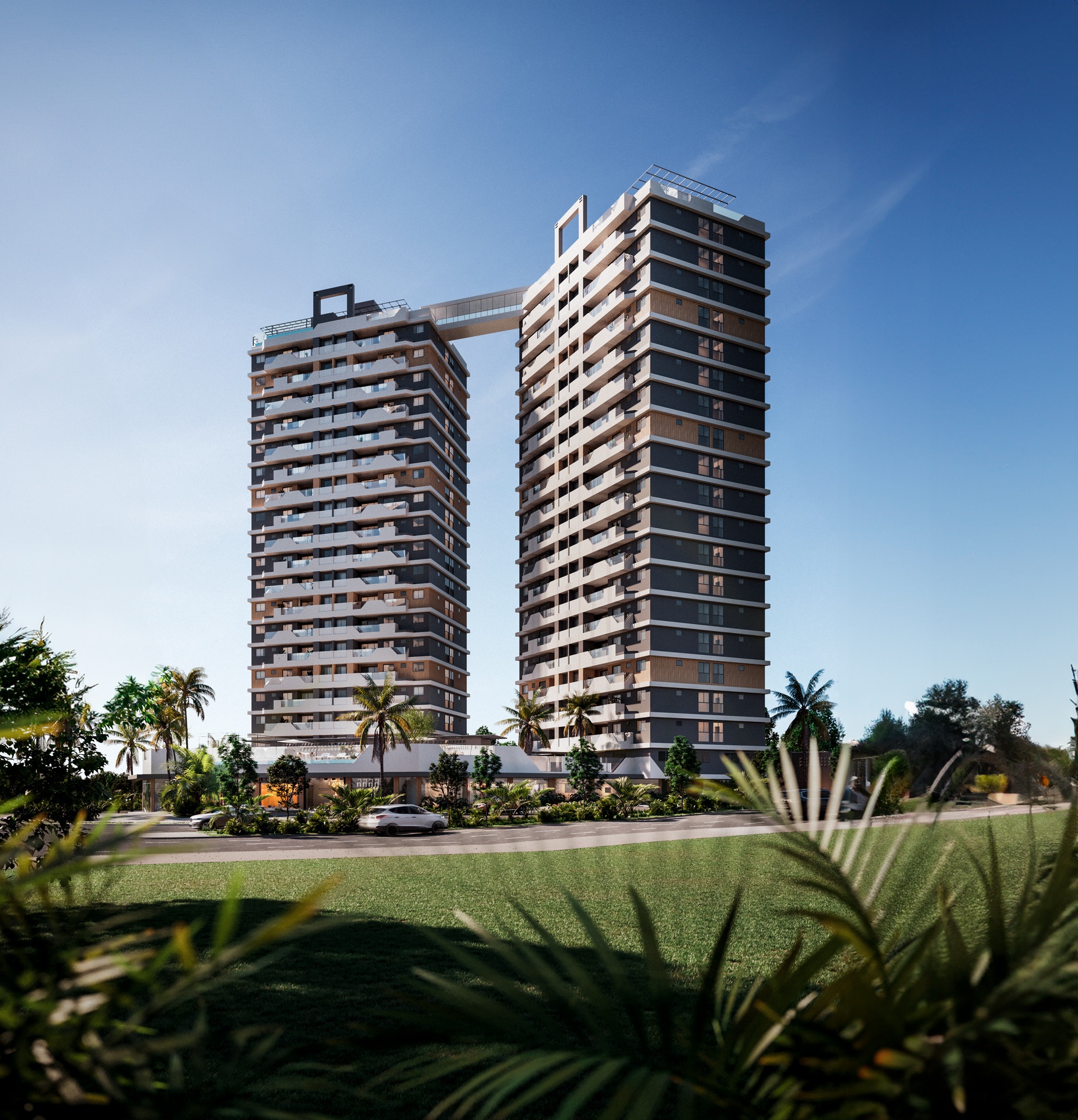 O projeto é composto por duas torres de 21 pavimentos, com 144 apartamentos, e arquitetura contemporânea que se destaca no skyline da cidade. A proposta alia funcionalidade, conforto e integração com o entorno urbano, em uma região estratégica com fácil acesso ao centro e à BR-163.