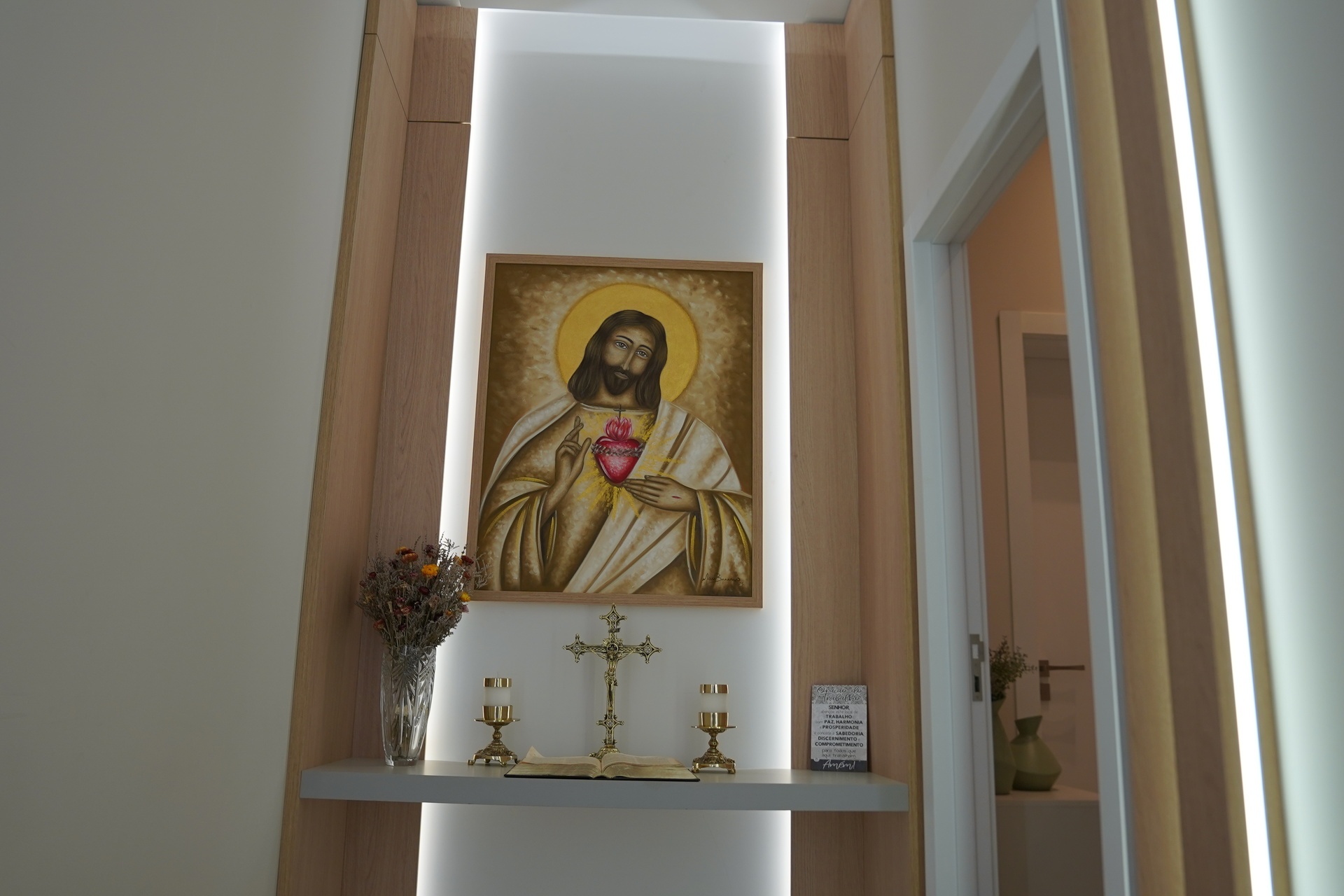 Além da estrutura física, a clínica também abriga um oratório, espaço litúrgico planejado por Lidiane para trazer um ambiente de espiritualidade. Todas as segundas-feiras, ela inicia os trabalhos da clínica com uma oração, colocando no altar o nome de todos os profissionais da casa e também dos pacientes. “Posso dizer que a clínica está do jeito que eu pedi para Deus”, afirma a empresária.