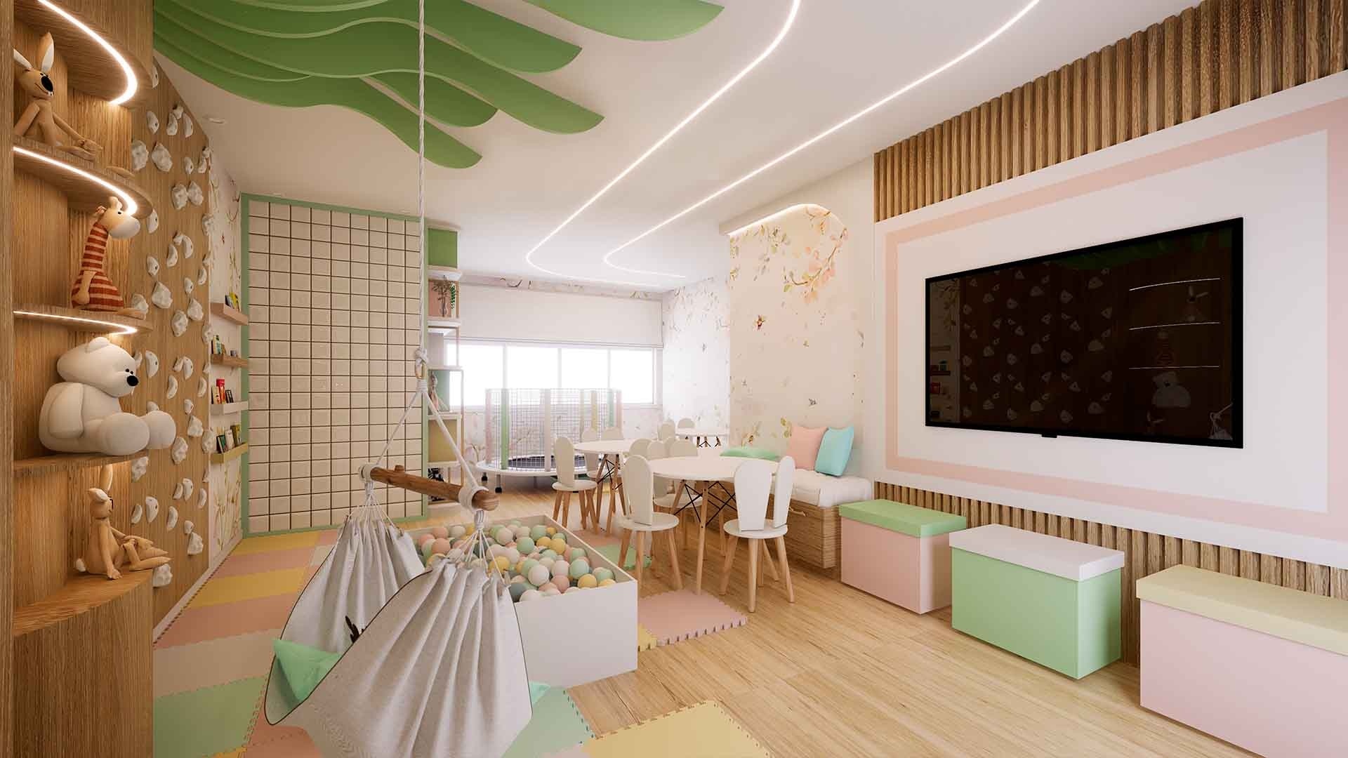 Conta ainda com piso molhado com piscina, campo de futebol, espaço para mesas de jogos, quadra poliesportiva, espaço verde, painéis de energia solar e sala de empreendedorismo. A unidade oferece atendimento integral, com alimentação balanceada e atividades extracurriculares. A área total do terreno é de 12.171,19 m². A escola atenderá, nesse primeiro momento, 570 alunos, mas possui capacidade para até 700 crianças.